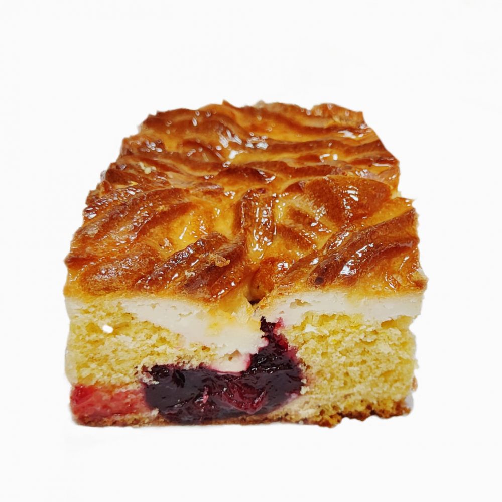 Восхитительный пирог, состоящий из кексового бисквита с творожно-вишнёвым узором на поверхности. Натуральный творог и конфитюр с кусочками вишни - эта изысканная начинка не только красива, но и необыкновенно вкусна.