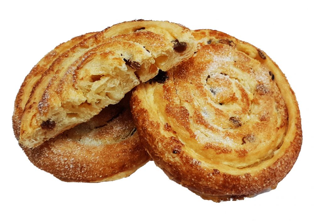 Любимое лакомство-слоеное дрожжевое тесто с ванильным кремом с изюмом.