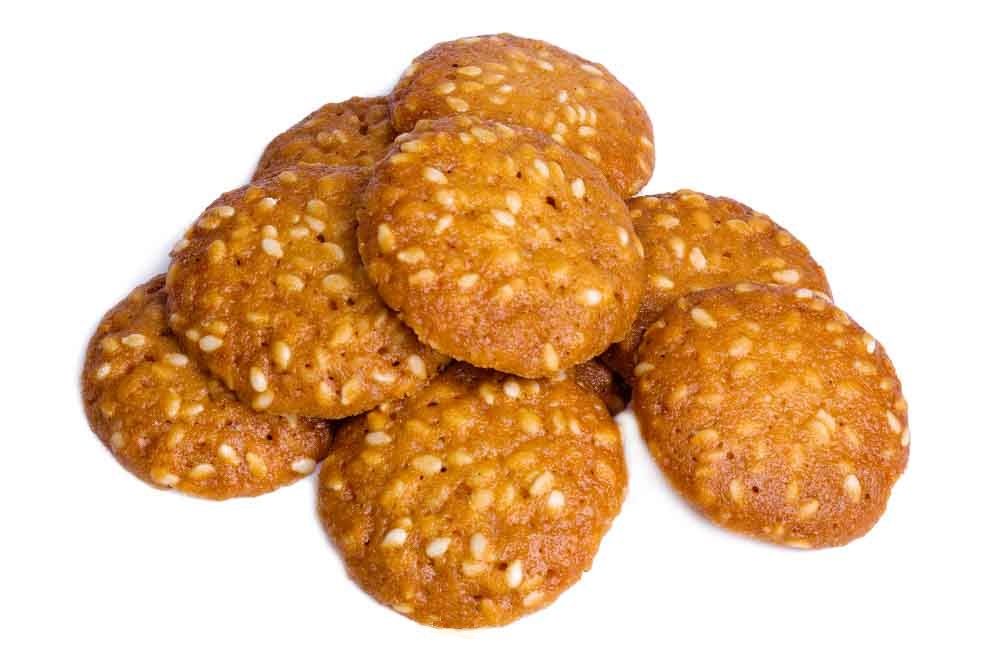 Бессменный лидер продаж - маленькое круглое, ароматное, хрустящее печенье из карамелизированного теста и натурального кунжута, нежно тающее во рту.